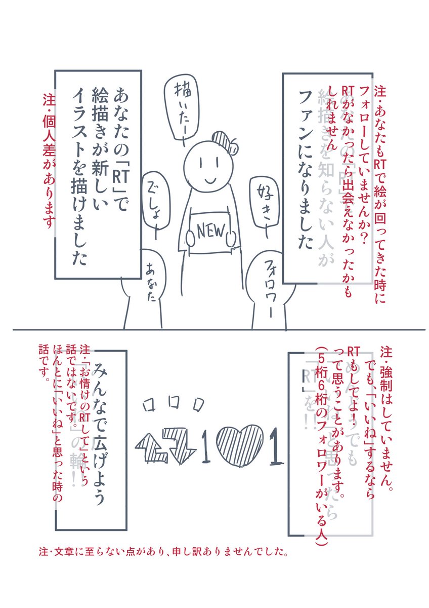ある絵師の イラストはいいねよりもrtが欲しい イラストで伝えたら賛否両論 なので イラストに解説をいれたイラスト を再アップ Togetter