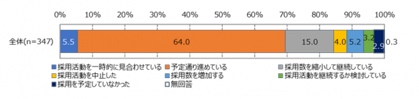 コロナ禍で採用を予定通りに実施している中小企業は64 採用数を変更して採用継続している企業を含めると8割に達する インディー